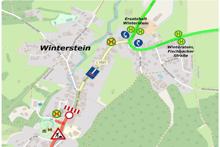 Nutzen Sie hier bitte ersatzweise die Haltestellen Winterstein.